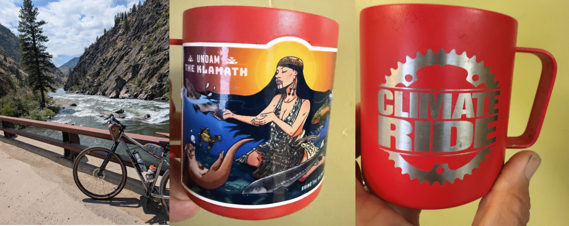 At Dwelling On Carbon, a big part of our mission is to foster a deep connection between people and nature. In part this is about breaking down the binaries that separate us from the nonhuman world. We can learn a lot from our Indigenous relatives about how to reimagine ourselves as inseparable from nature. The story of undamming the Klamath has personal meaning for me as I have been following it for awhile as you can see by the photo of the sticker on my mug below. One way I connect with nature is on my bike including amazing bike rides with the nonprofit Climate Ride — most recently in very remote areas of Idaho nearly always riding along a river such as the Salmon or a tributary (see photo left). Please follow us on Instagram (@dwellingoncarbon) to find out about upcoming events that include local bike rides and native plants! And we’d love to hear your thoughts about rights of nature and legal personhood for rivers, plants, mountains and ecosystems!