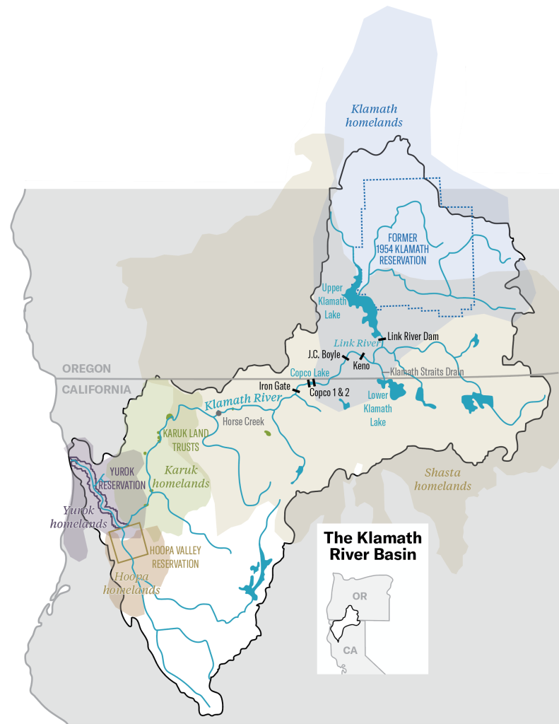 Klamath River Renewal Project; Native-Land.ca; Google Maps; Luna Anna Archey